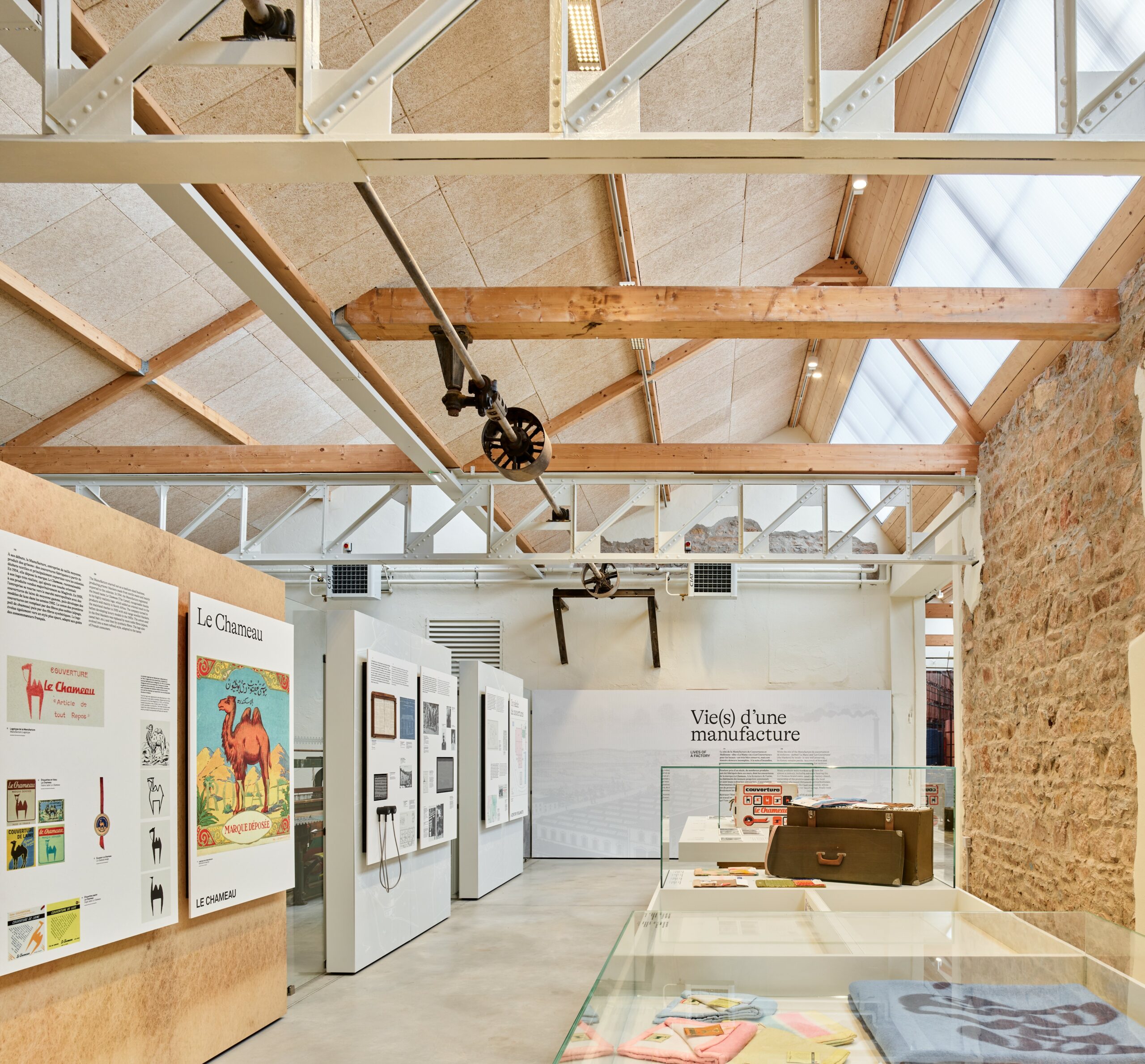 Aux côtés de Designers Unit, nous nous sommes appuyés sur les forces de l’existant pour inventer un parcours muséal retraçant les savoir-faire, la diversité et la qualité des productions textiles locales, dans des volumes discrètement restaurés, où quelques touches contemporaines viennent prolonger l’identité de cette usine autrefois dédiée à la confection de couvertures.
