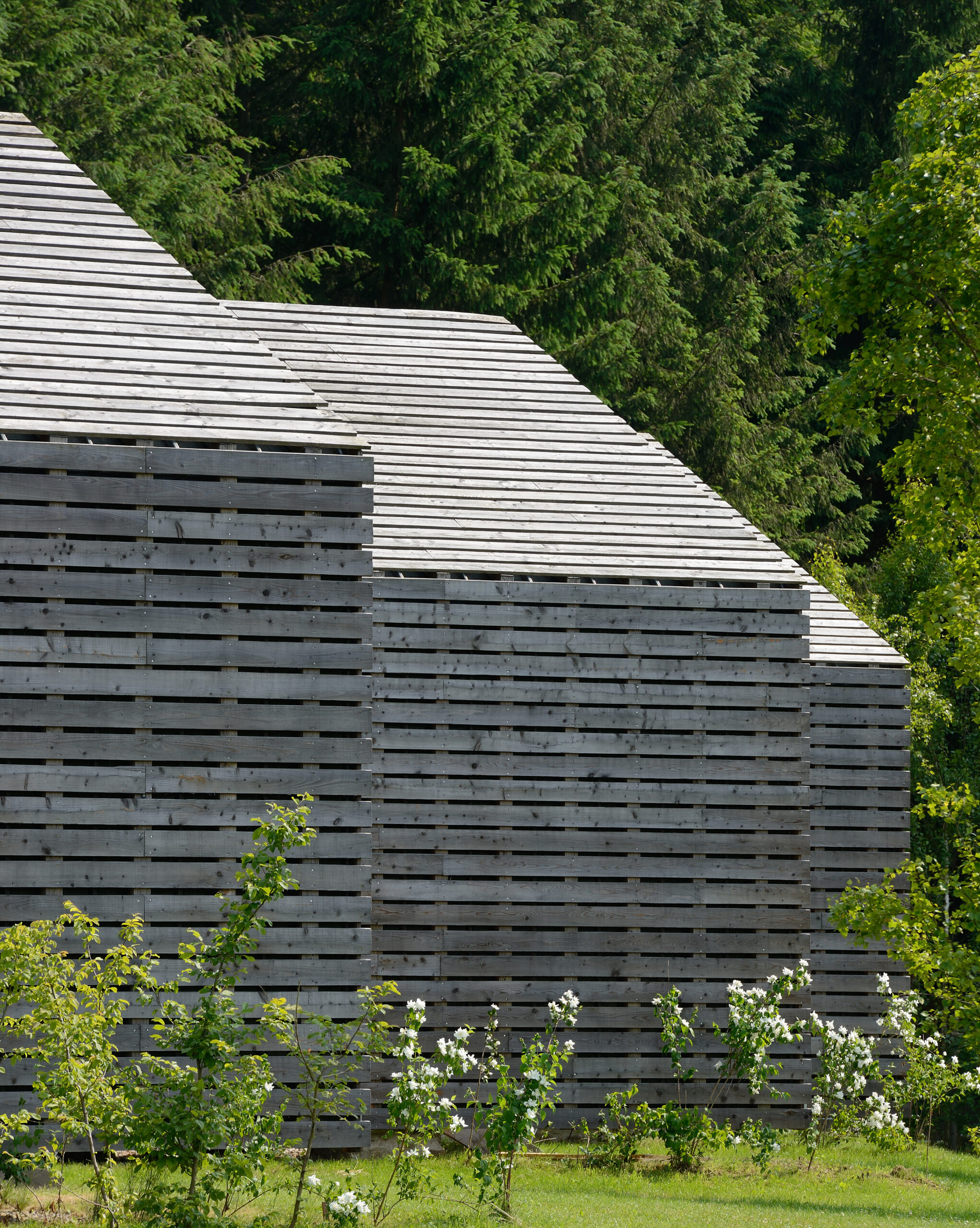 Les 4 gites vont s’inscrire dans la continuité de la courbe d’implantation de 12 constructions légères en bois existantes, d’architecture traditionnelle et de couleurs variées, qui sont tournées vers le lac, autour d’un pré face au lac. Les habitations sont organisées sur deux niveaux, afin de limiter l’emprise au sol. Elles comportent au niveau bas une chambre, un séjour avec coin kitchenette et des sanitaires accessibles aux PMR. A l’étage, autour d’un coin mezzanine accessible et d’une salle d’eau, se trouvent deux autres chambres dont une d’une capacité de 4 couchages. La capacité d’accueil de chaque entité est de 8/9 personnes (1 couchage complémentaire sur la banquette du séjour). C’est à la fois dans la continuité, mais aussi dans l’affirmation d’un langage architectural plus contemporain, en bois brut à l’intérieur et à l’extérieur, que les habitations nouvelles sont conçues. Elles sont labélisées BBC.