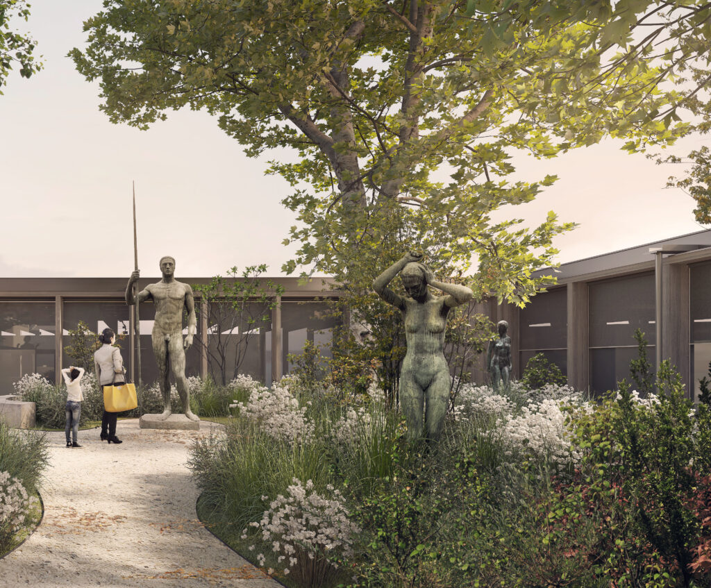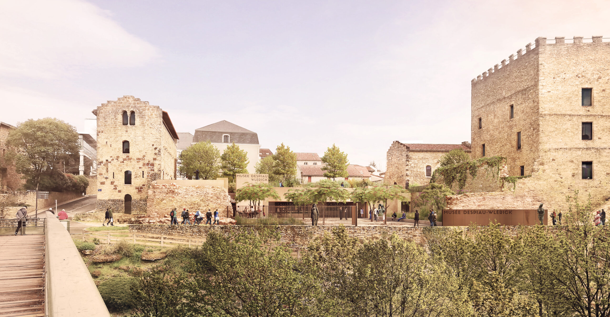 Lors de notre première visite, nous avons découvert des sculptures aux figures et aux corps calmes, un beau site taillé dans une pierre coquillière jaune qui s’est lentement stratifié comme la végétation abondante qui plonge ses racines dans le Midou en contrebas. Imprégnés de la sérénité des lieux, nous avons imaginé, aux côtés de Designers Unit pour la muséographie et Itinéraire Bis pour le paysage, un projet composé d’une strate légère faite de bois local qui complète deux strates anciennes, celles de la pierre coquillière et des enduits, pour étendre un parcours muséal au pied du Donjon Lacataye réhabilité et autour du jardin conservé. Le chantier est sur le point de commencer pour réaliser ce projet, qui permettra de faire découvrir, ou redécouvrir, les collections et la richesse d’un site qui le mérite.